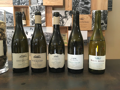 En zo ook dit jaar bij Deux Roches. Het is voor ons een bekend adres en Leo en Petra kopen al jaren hier hun Saint- Véran van oude stokken. Geen goedkope wijn maar wel, denken wij, het beste wijnhuis van de hele streek. Het is een wijn van 80 jaar oude stokken en gerijpt op 50% vaten en 50% cuve inox. Dit geeft een complexe wijn, vol en rond. Natuurlijk heerlijk bij vis en slakken maar probeer deze ook eens bij kazen.
